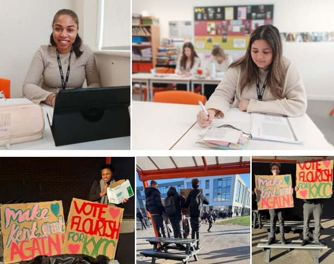 Ms Ayling’s A Level Politics students are currently recapping key topics ahead of their summer exams, paying particular attention to areas requested by students and highlighted by Ms Ayling following their in-class discussions and mock exam feed-back. In this lesson students have revisited Federalism – creating revision notes and prompt cards for salient points concerning the US Government sectors – Executive, Legislative and Judicial. One of Ms Ayling’s students, Flourish has been inspired by her studies to pursue a political career and is a Kent Youth Community Council representative for Dartford. Flourish was recently re-elected following a strong and universally supported manifesto .. and some enthusiastic campaigning from her peers at Stone Lodge School! Flourish is committed to giving young people across Dartford a voice at local government level with a specific focus on tackling child poverty and for all young people to feel safe and protected.
